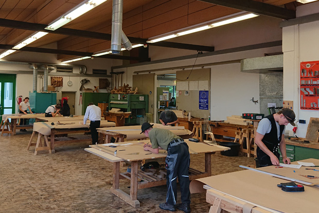 Wie bei jedem Leistungswettbewerb ging es auch dieses Mal darum, dass die Teilnehmer einen sauberen und übersichtlichen Aufriss erstellten und damit ihre insgesamt 12 Hölzer anrissen und ausarbeiteten. Kontrolliert wurden Maße am Modell und die Fugenpassung. Wurden Hölzer nachbearbeitet oder verschnitten, gab es dafür Punktabzug.