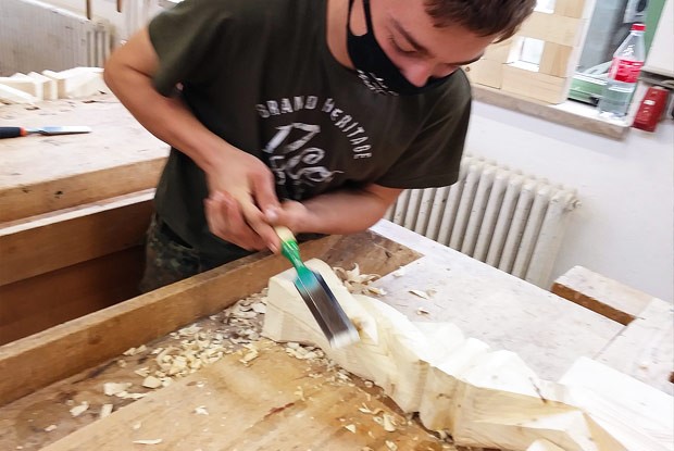 Nach einem Monat im Berufsgrundschuljahr-Zimmerer erzählt Maxi Kirr (16) aus Pittenhart: „Bisher gefällt es mir echt gut“, er macht sein BGJ an der Berufsschule Traunstein: „Der Unterricht ist ganz anders als früher an der Mittelschule. Man hat viel mehr Praxis und alles ist auf den späteren Beruf als Zimmerer ausgerichtet.“